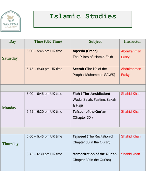 Saturdays – Aqeedah & Seerah (with Abdulrahman Eraky):